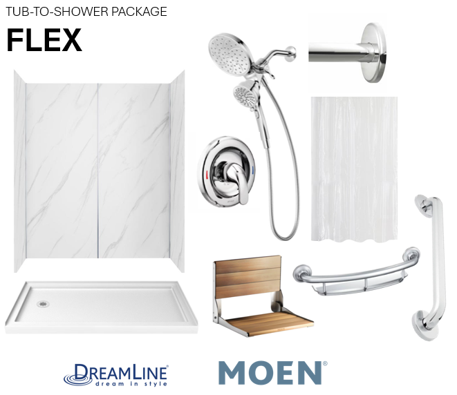 Below you will find a selection of ready-to-go, pre-assembled packages for tub-to-shower conversions. Please contact us for pricing.